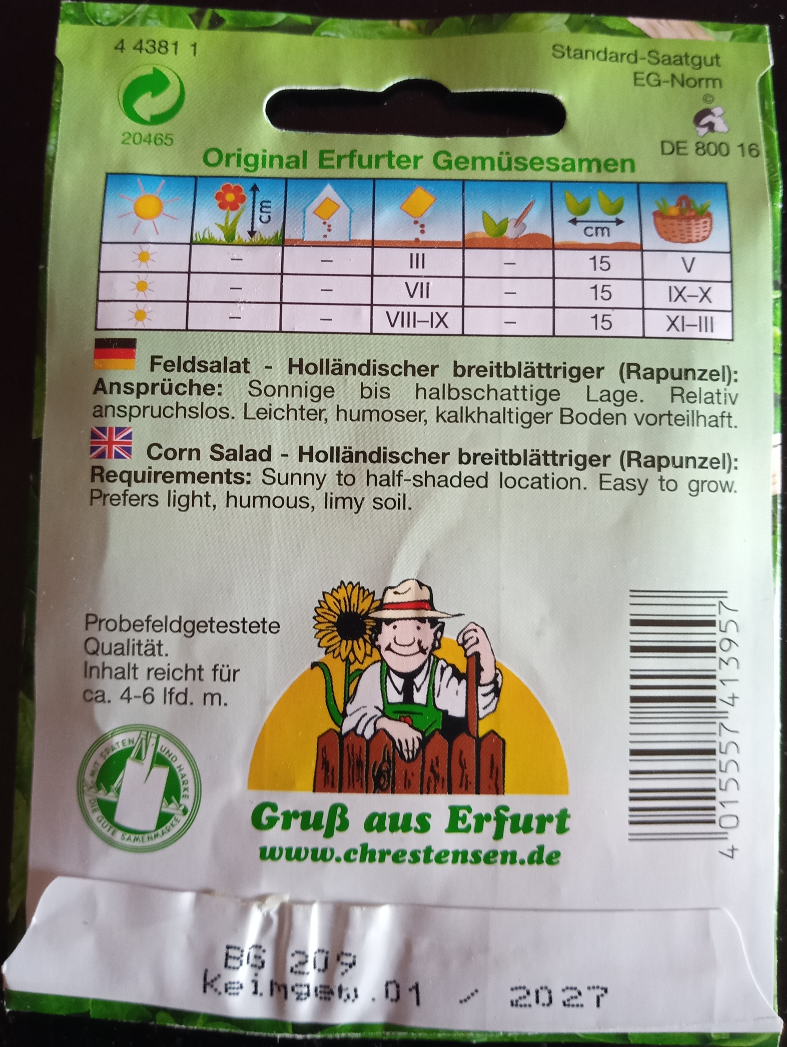 Feldsalat "Holländischer breitblättriger für Herbst- und Frühjahrsernte"