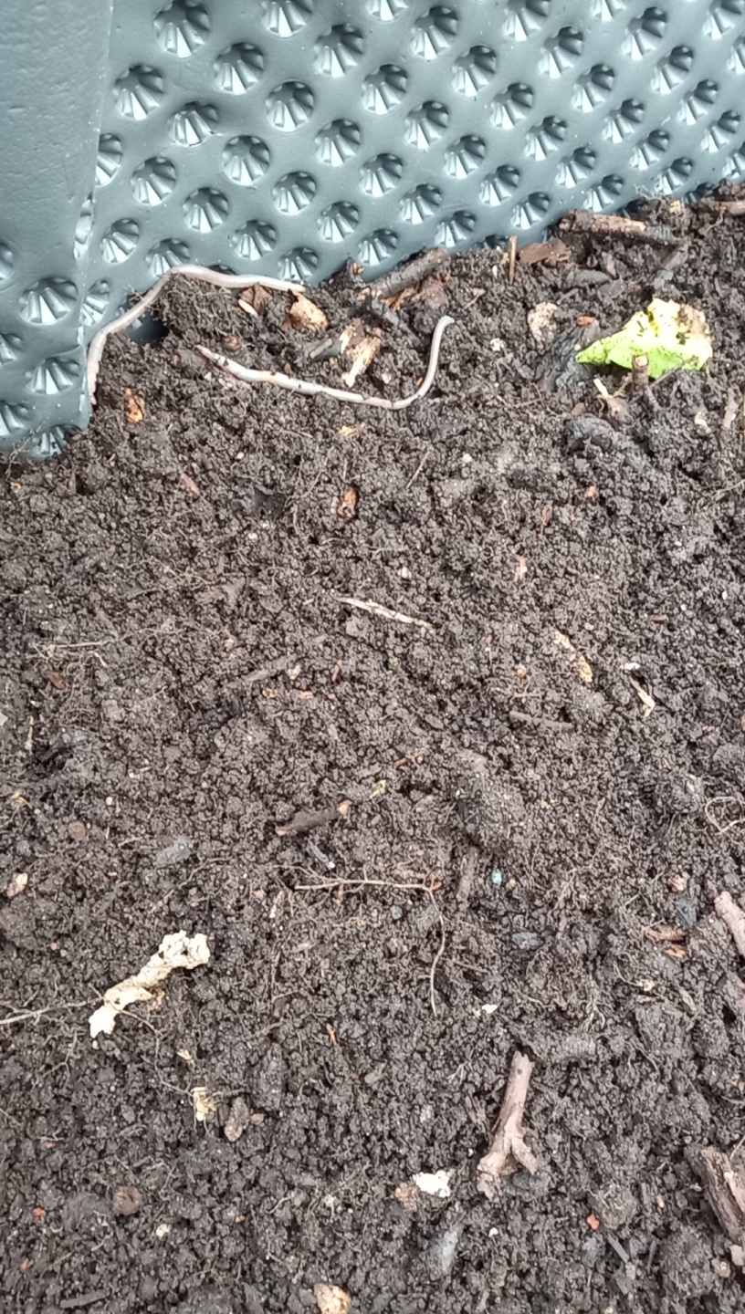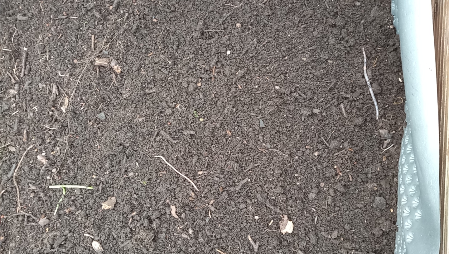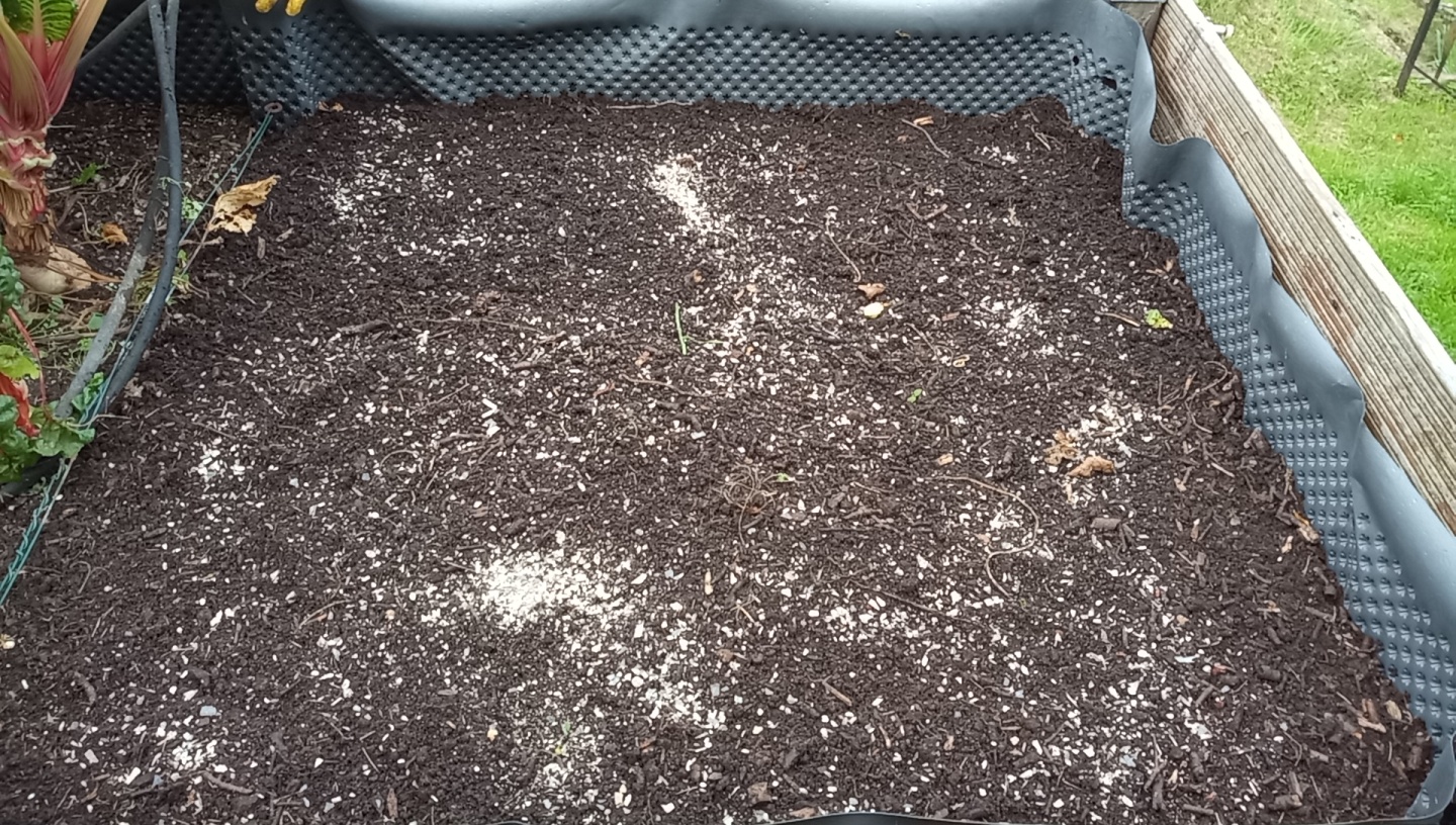 23.09.: Südhälfte gelockert mit 3-Zack, viele Regenwürmer, gedüngt mit Hornspänen