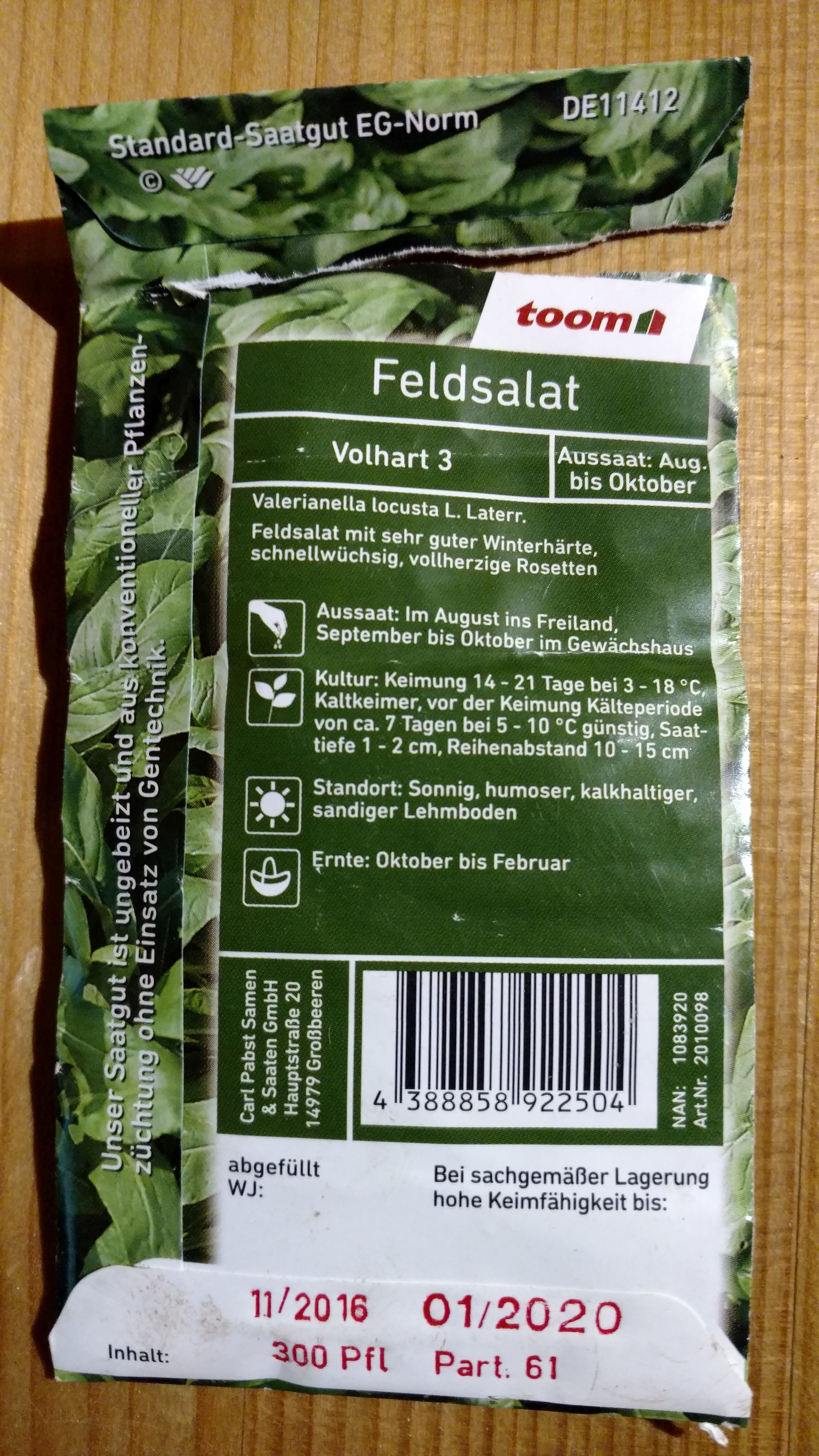 Feldsalat "Volhart 3", Toom