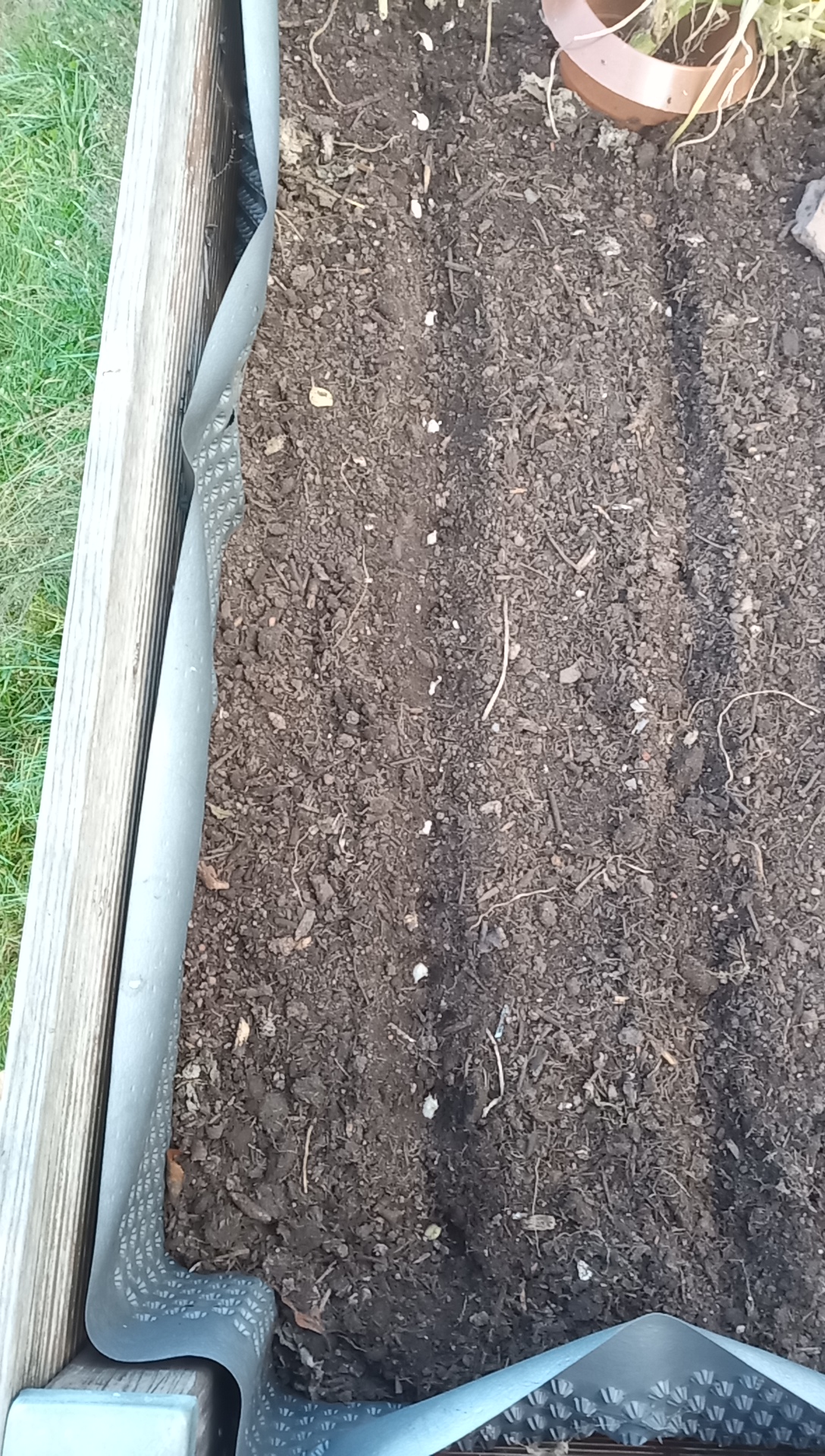 Vorher 40 L Bio Kompost von Toom in die Hochbeethälfte eingearbeitet.