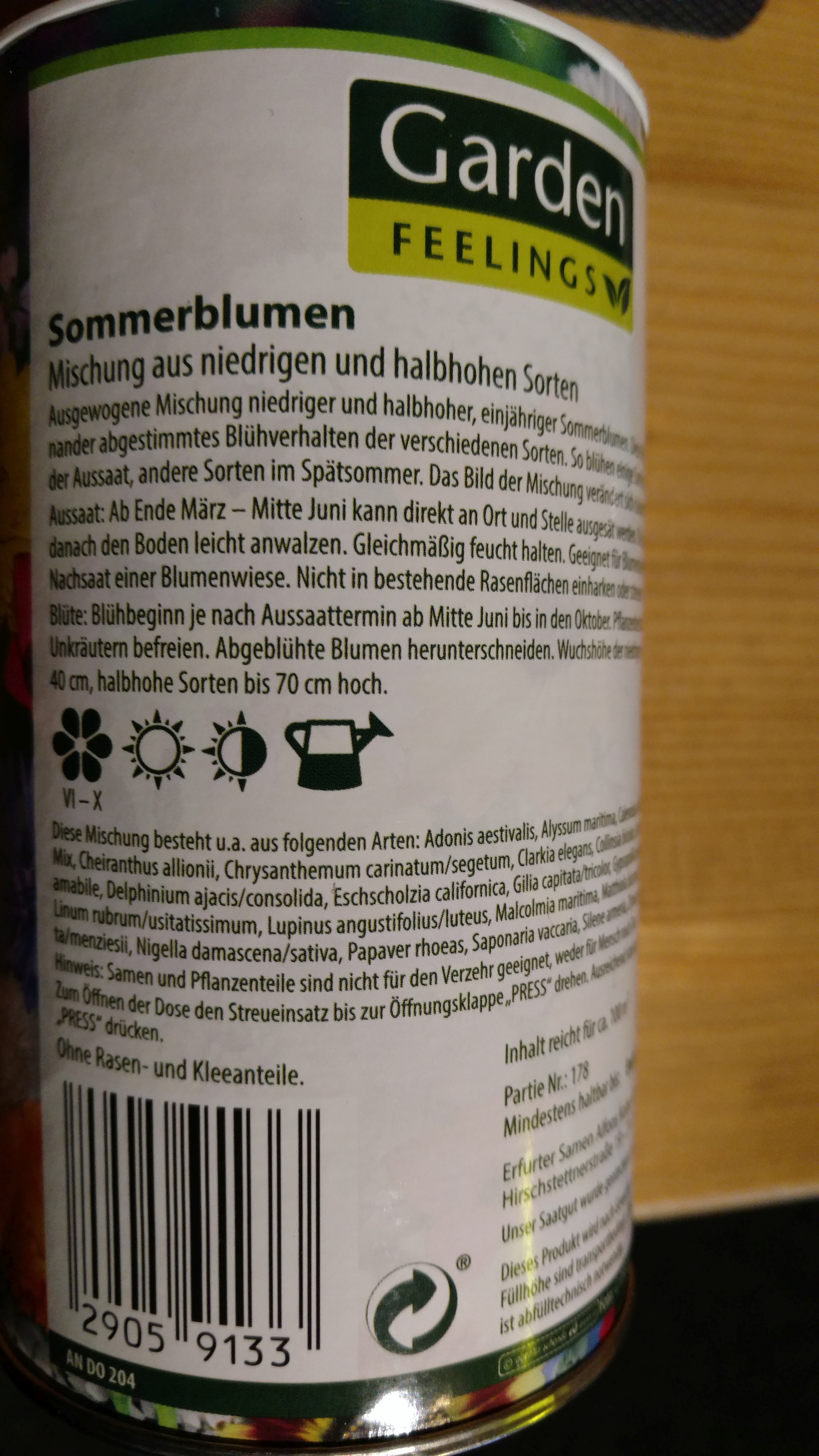 - Thema wurde von Sommerblumen Mischung aus niedrigen und halbhohen Sorten zu Sommerblumen Mischung aus einjähr., niedrigen und halbhohen Sorten geändert